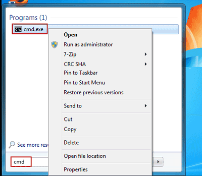 - روی cmd.exe یا Command Prompt که در نتایج جستجو ظاهر میشود، راست-کلیک کنید.